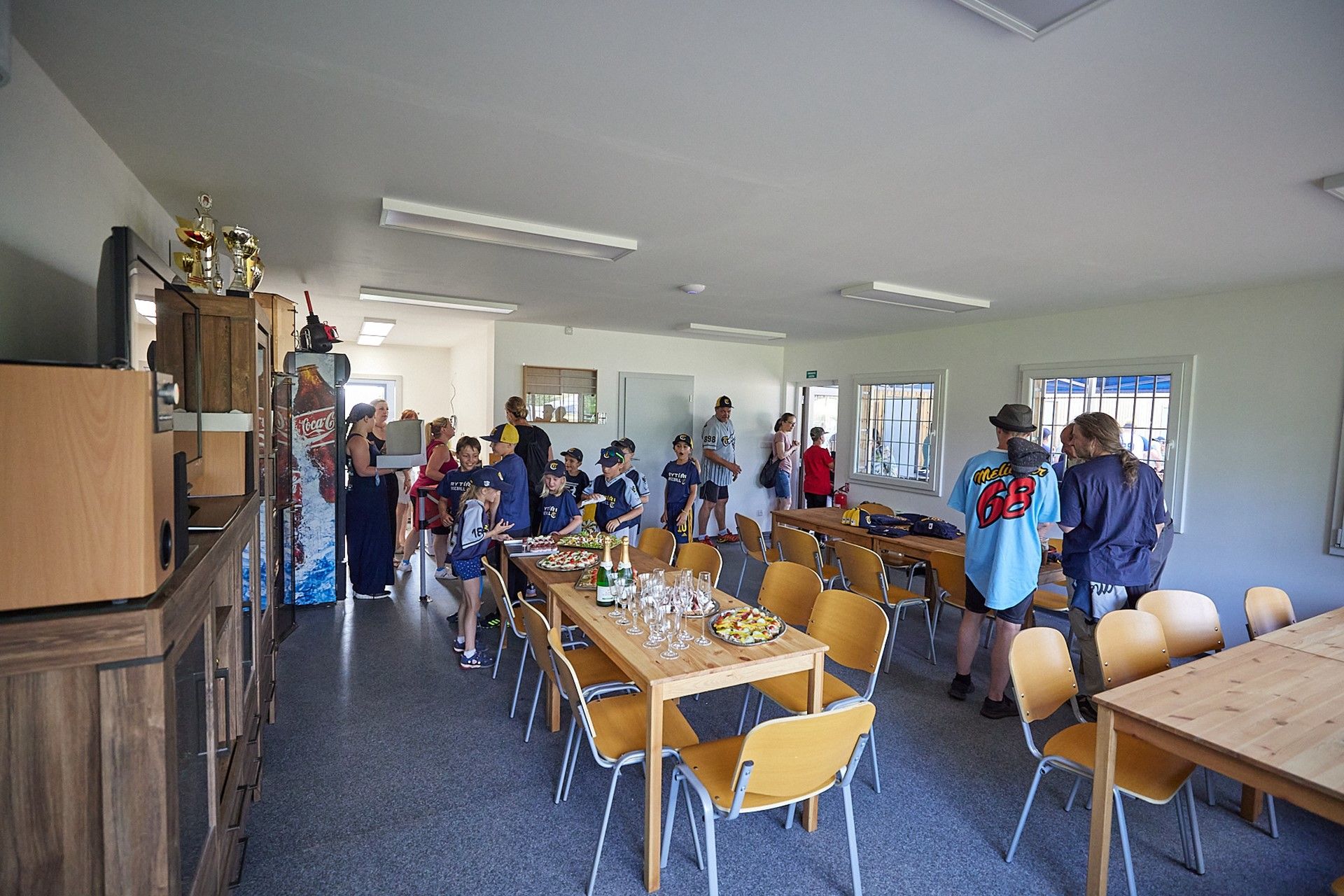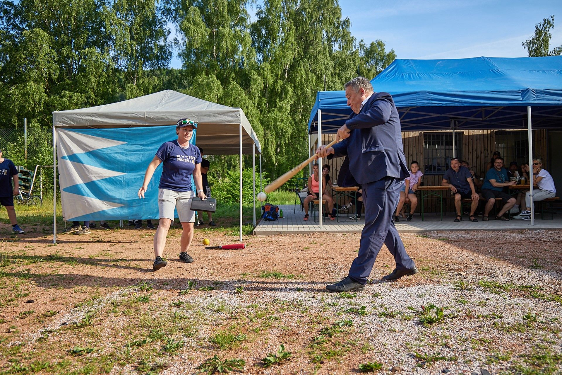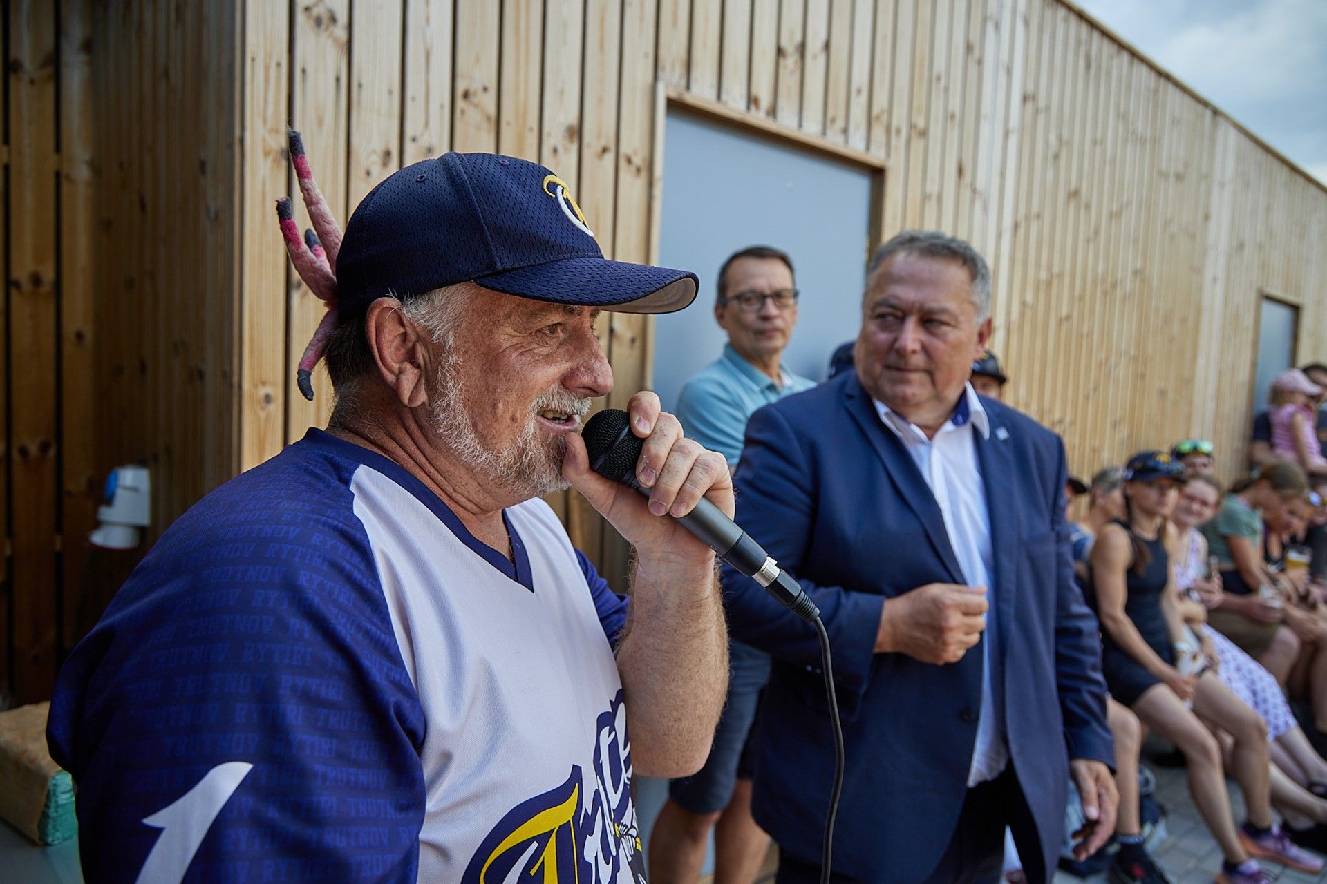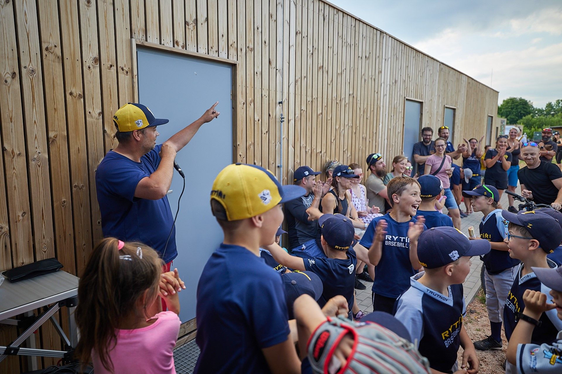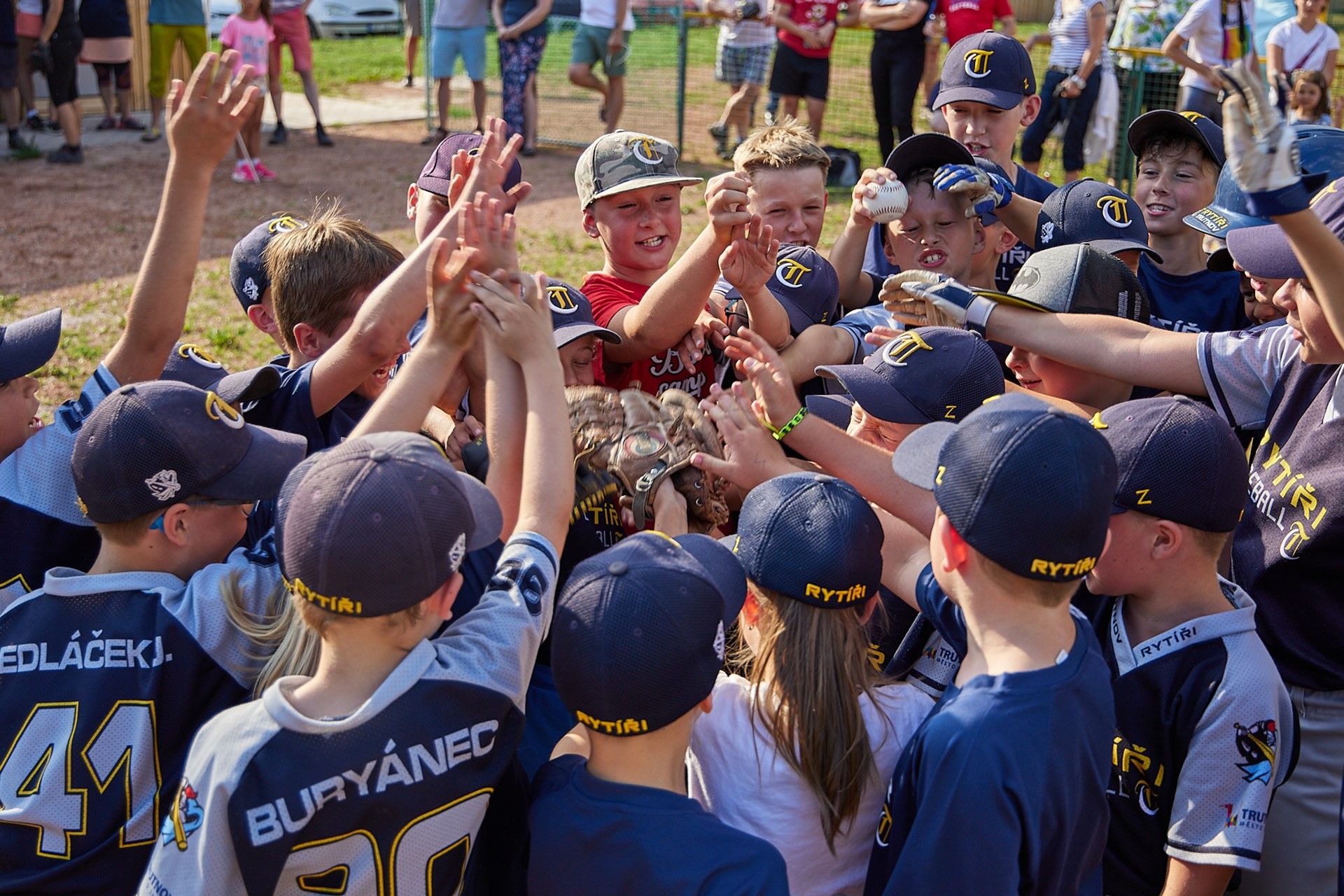Baseballisté se při pondělním otevření nového zázemí na pálkařském hřišti rozhodli vydražit mezi sebou dort vyrobený speciálně k jejich jubileu. Nejvyšší nabídka činila 10 tisíc korun. Peníze míří na jižní Moravu zasaženou ničivým tornádem. Do dortu řízli jako první nejmenší členové klubu